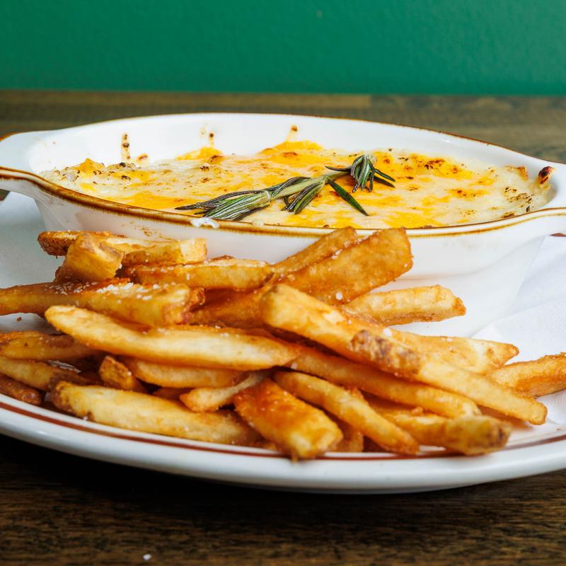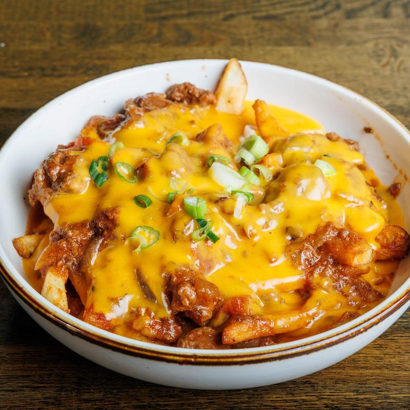 Crispy chips smothered in steak pie filling, smoked gouda, sharp cheddar, and green onion.